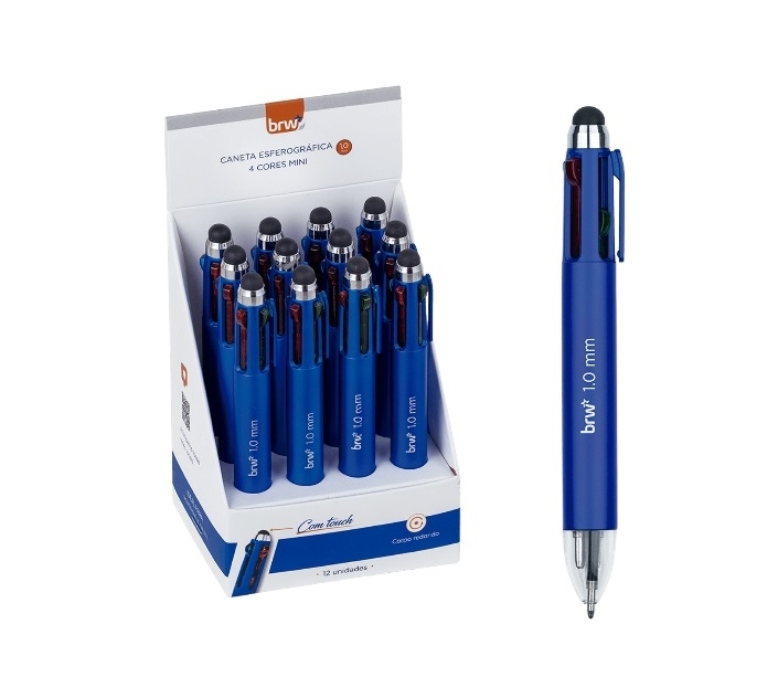 Boligrafo 1.0mm mini - 4 colores c/tactil pote 12 unidades