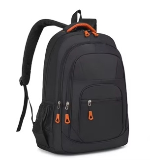 Mochila 4 cierres negra lisa borde rojo